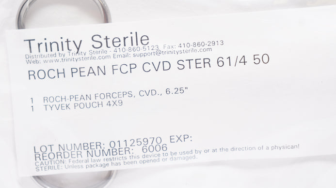 - Trinity Sterile 6006 Roch Pean Forceps CVD 6.25inch, Tyvek Pouch 4 x 9inch