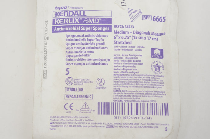 - Tyco 6665 Kendall Kerlix AMD Antimicrobial Super Sponges 6inch x 6.75inch (x)