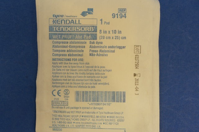 Tyco 9194 Kendall Tendersorb Wet Pruf Abdominal Pad 8 (x)