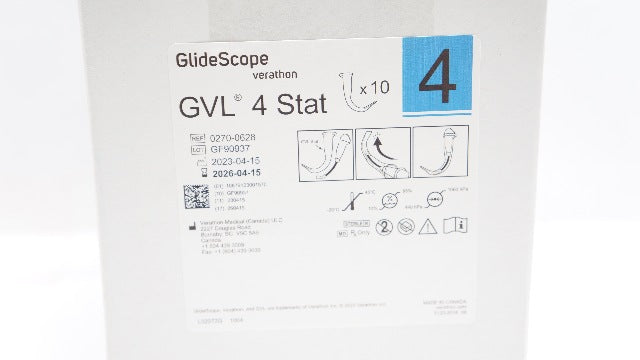 - Verathon 0270-0628 GlideScope GVL 4 Stat VideoLaryngoscope - Box of 10