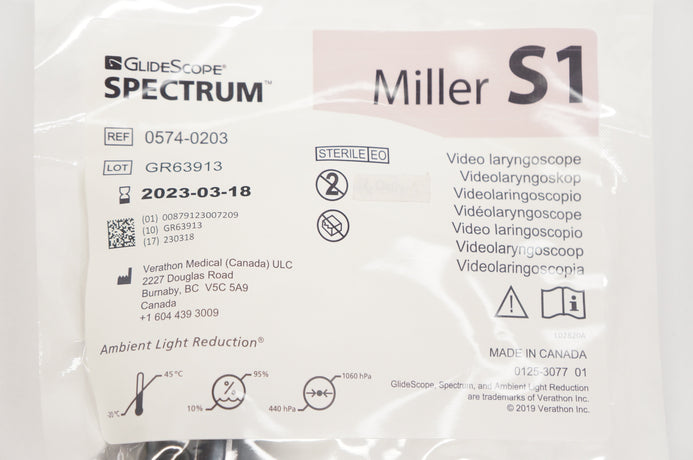 - Verathon 0574-0203 GlideScope Spectrum Miller S1 Video Laryngoscope