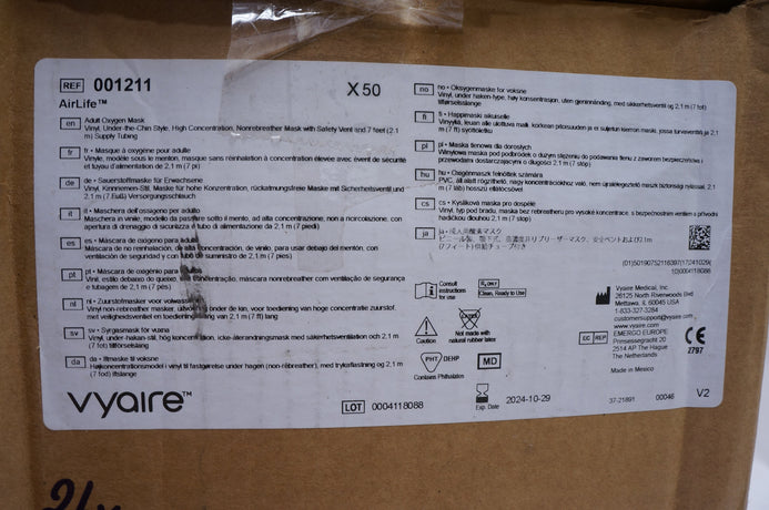 - Vyaire 001211 Airlife Adult Oxygen Mask - Case of 50