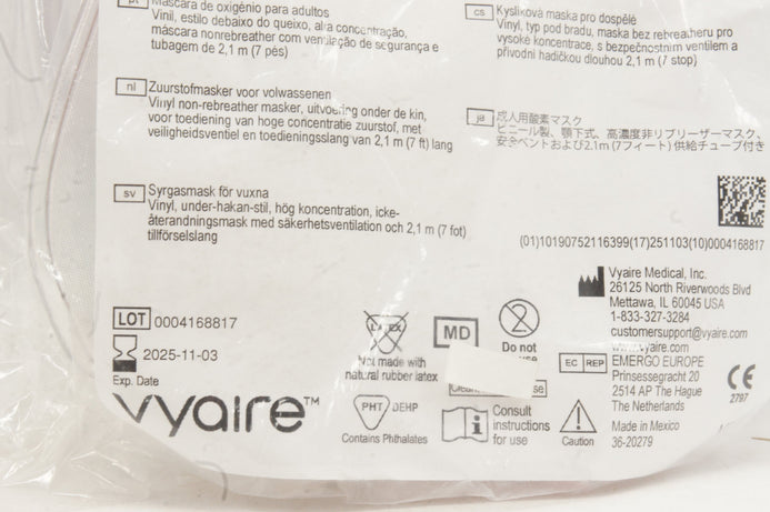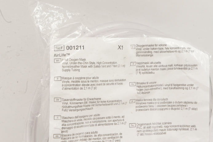 - Vyaire 001211 Airlife Adult Oxygen Mask Vinyl, Mask w/7ft. Supply Tubing