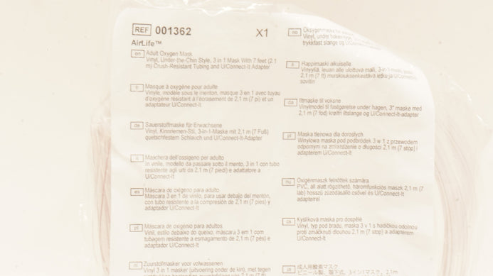 - Vyaire 001362 AirLife Adult Oxygen Mask Vinyl, Under-the-Chin Style