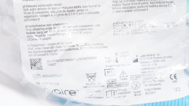 - Vyaire 001363 AirLife Adult Venturi Style Mask 6inch Flextube 7ft. Oxygen Tubing