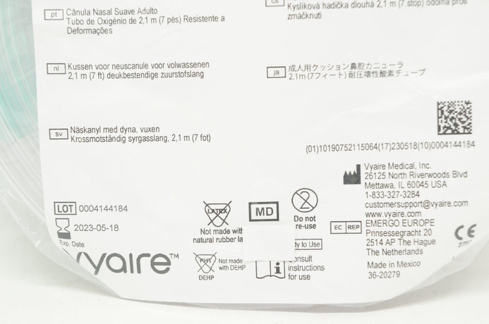 - Vyaire 002600 AirLife Adult Cushion Nasal Cannula 7ft. Oxygen Tubing
