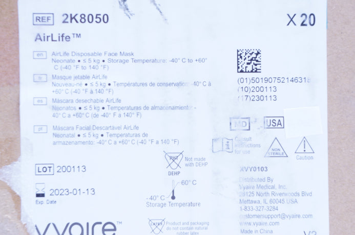 - Vyaire 2K8050 AirLife Face Mask MD - Box of 20