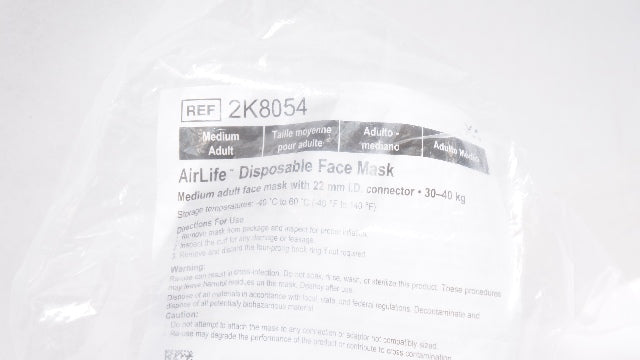 - Vyaire 2K8054 AirLife Disposable Adult Face Mask w/22mm ID Connector, Medium(x)