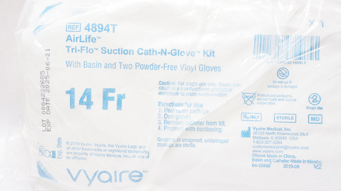 - Vyaire 4894T AirLife Tri-Flo Suction Cath-N-Glove Kit 14Fr