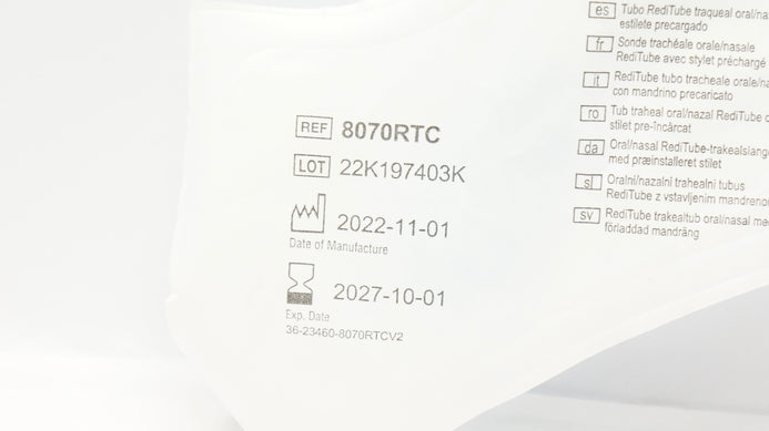 - Vyaire 8070RTC Tracheal Tube OIral/Nasal w/Preloaded Stylet 7.0ID x 9.6OD x 25mm