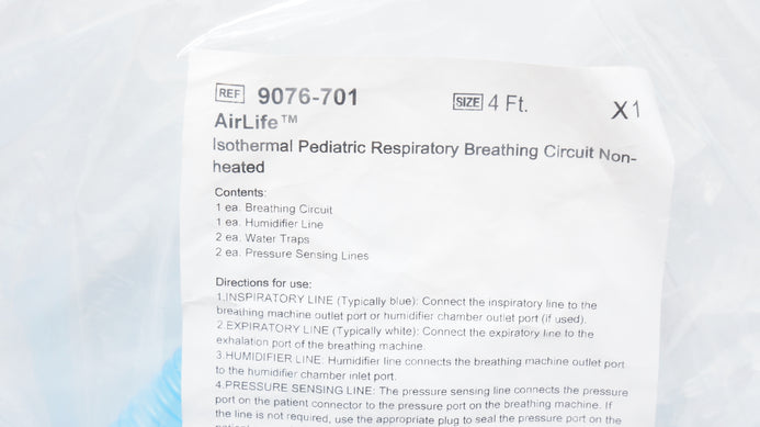 - Vyaire 9076-701 AirLife Isothermal Pediatric Respiratory Breathing Circuit 4Ft.