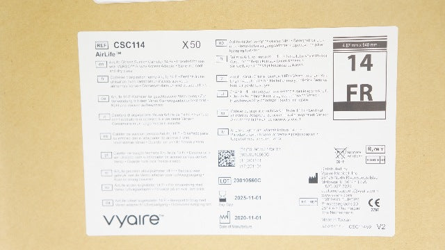 - Vyaire CSC114 AirLife Closed Suction Cath. 14 Fr. - Box of 50