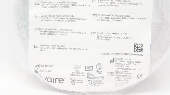- Vyaire SFT2699 AirLife Adult Cushion Nasal Cannula with 7ft. Oxygen Tubing (x)