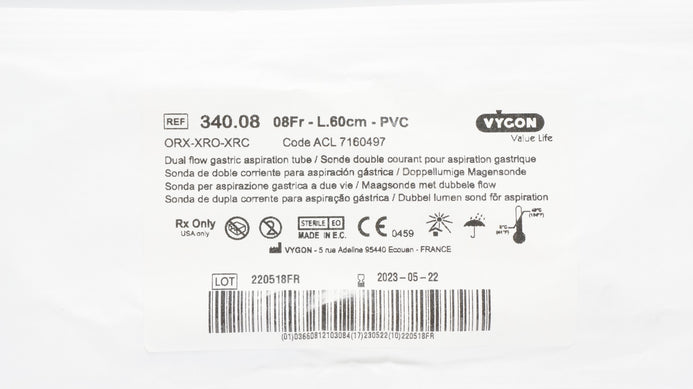 Vygon 1340.08 Double Lumen Gastric Tube 08Fr x 60cm (x)