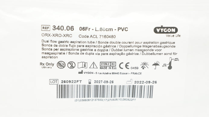 Vygon 340.06 Double Lumen Gastric Tube 06Fr - L. 60cm