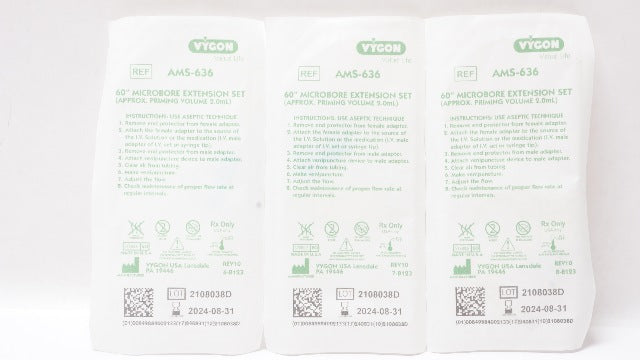 - Vygon AMS-636 Microbore Extension Set Approx. Priming Volume 2.0mlx60in-Packof3
