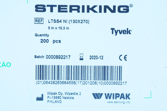 Wipak LTSS4NI Steriking Tyvek Sterilization Pouches 5 x 10.5inch(x) - Box of 123
