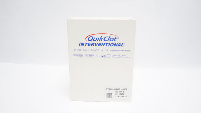 - Z-Medica 467-Z QuickClot Interventional Hemostatic Pad 1.5 x 1.5in.(x)-Box of 10