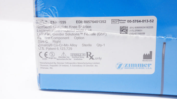 - Zimmer 00-5764-013-52 NexGen Complete Knee Solution Femoral Component C, Right