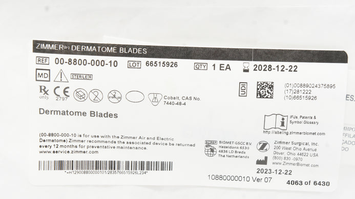 - Zimmer 00-8800-000-10 Dermatome Blades