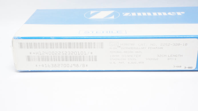 - Zimmer 2252-320-10 M/DN Intramedullary Fixation Femoral/REcon Nail 10mm x 32cm