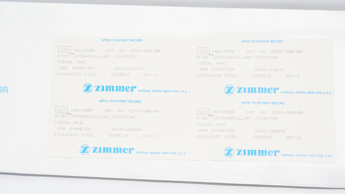 - Zimmer 2253-260-09 M/DN Intramedullary Fixation Tibial Nail 9mm x 26cm