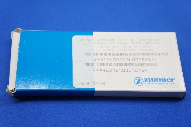 - Zimmer 256-01-22 S.S. Twist Drills Diam. 5/64 ~ Box of 3