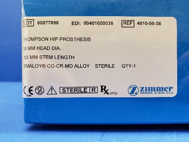 - Zimmer 4010-00-38 Thompson Hip Prosthesis 38mm Head Diam., 105mm Stem Length (x)