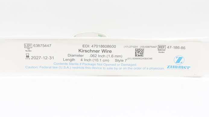 - Zimmer 47-186-86 Kirschner Wire 1.6mm x 10.1cm, Style 7