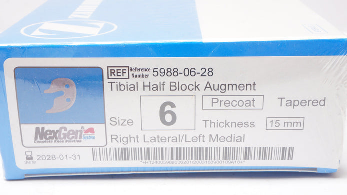 - Zimmer 5988-06-28 NexGen Complete Knee Solution,Tibial Half Block Augment,Size 6
