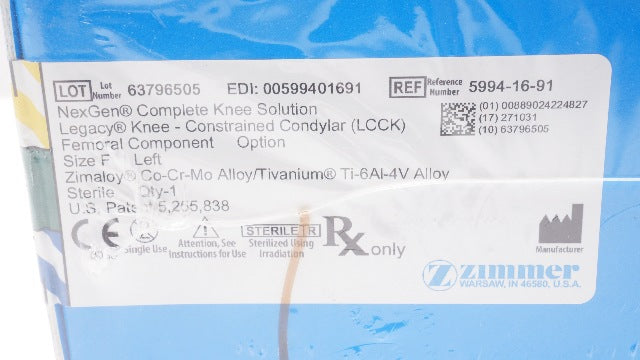 - Zimmer 5994-16-91 NexGen Legacy Femoral Component, Left, Option LCCK, Size F