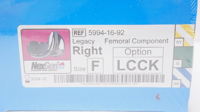 - Zimmer 5994-16-92 NexGen Legacy Femoral Component, Right, Option LCCK, Size F