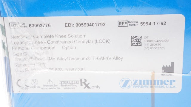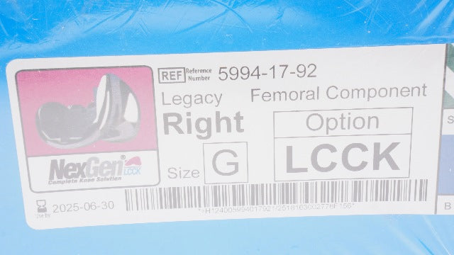 - Zimmer 5994-17-92 NexGen Legacy Femoral Component, Right, Option LCCK, Size G