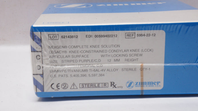 - Zimmer 5994-22-12 Legacy Articular Surface with Locking Screw LCCK 12mm (x)