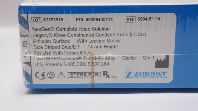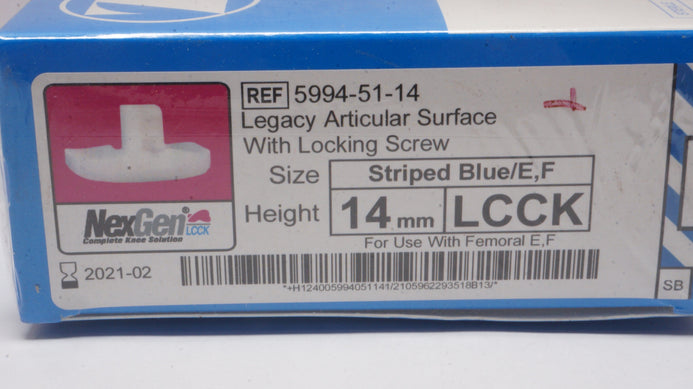 - Zimmer 5994-51-14 Legacy Articular Surface with Locking Screw LCCK 14mm (x)