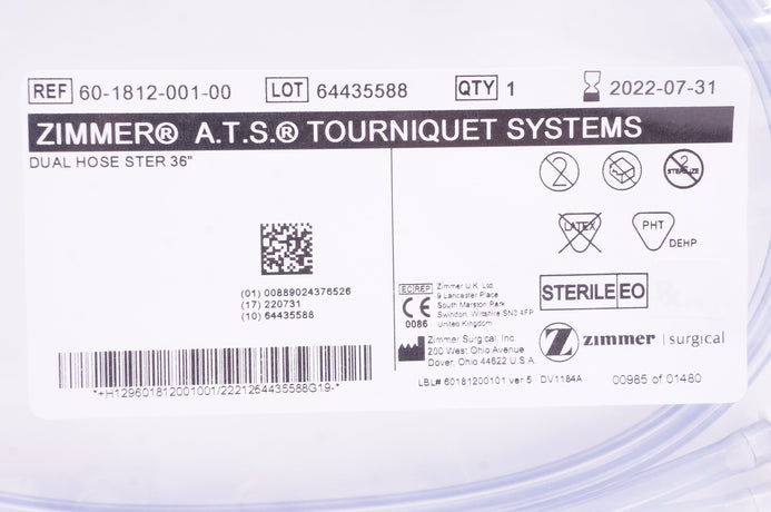 - Zimmer 60-1812-001-00 A.T.S. Tourniquet Systems Dual Hose Ster 36 inch