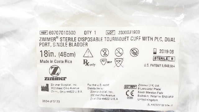 - Zimmer 60707010300 Sterile Disposable Tourniquet Cuff 18inch (x)
