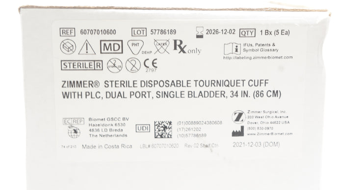 Zimmer 60707010600 Sterile Disposable Tourniquet Cuff - Box of 5
