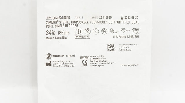 - Zimmer 60707010600 Sterile Disposable Tourniquet Cuff W/PLC, Dual Port 34inch(x)