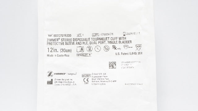 - Zimmer 60707015200 Tourniquet Cuff w/Protective Sleeve and PLC, Dual Port 12inch