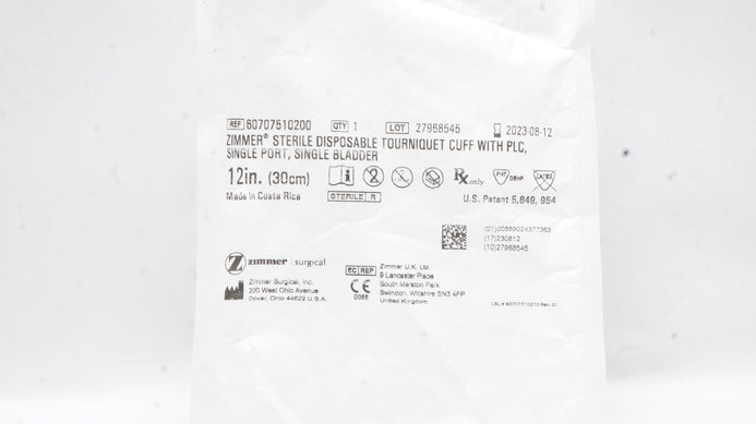 - Zimmer 60707510200 Disposable Tourniquet Cuff w/PLC, Port, Bladder 12inch (x)