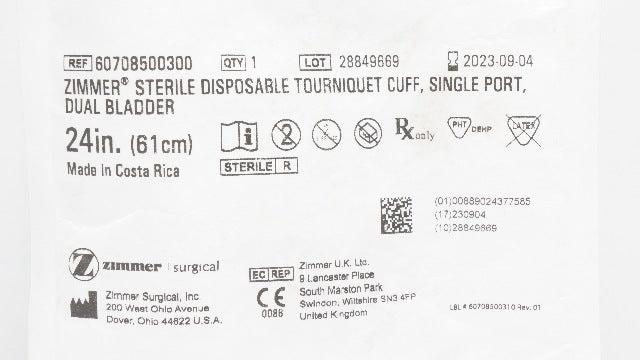 - Zimmer 60708500300 Sterile Disposable Tourniquet Cuff, Single Port, 24inch (x)