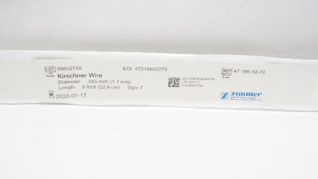 - Zimmerman 47-186-02-79 Kirschner Wire .045In x 9In, Style 7