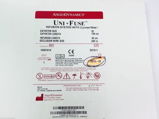 - 12401814 ~ AngioDynamics Infusion System Cath Size 5F x 135cm (x)