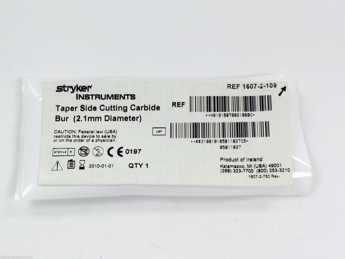 - 1607-2-109 ~ Stryker Taper Side Cutting Carbide Bur Diameter 2.1mm (x)