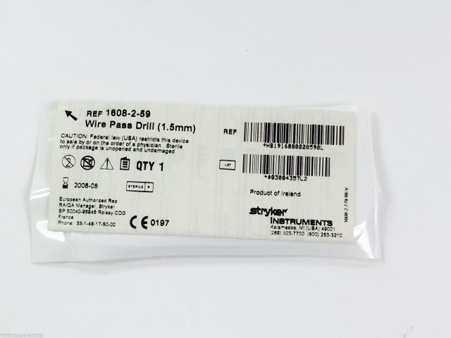 - 1608-2-59 ~ Stryker Wire Pass Drill 1.5mm (x)