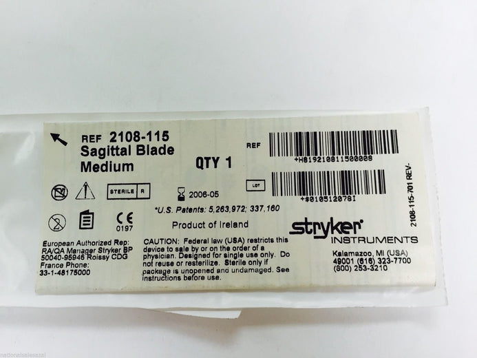 2108-115 ~ Stryker Sagittal Blade Medium (x)