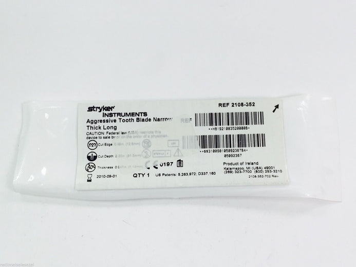 - 2108-352 ~ Stryker Agressive Tooth Blade Narrow Thick Long 12.5 x 81.5 x 1.19mm