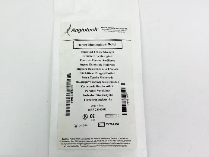 231030G ~ Angiotech Improved Tenile Strength 20Ga x 3cm (x) ~ Lot of 4