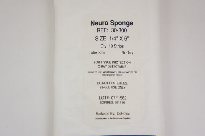 30-300 ~ DeRoyal Neuro Sponge 1/4in. x 6in. (x) ~ Pack of 10